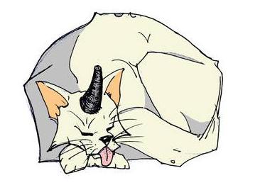 galego fai mexar ós nenos na cama. Ten forma de gato branco cun corno na